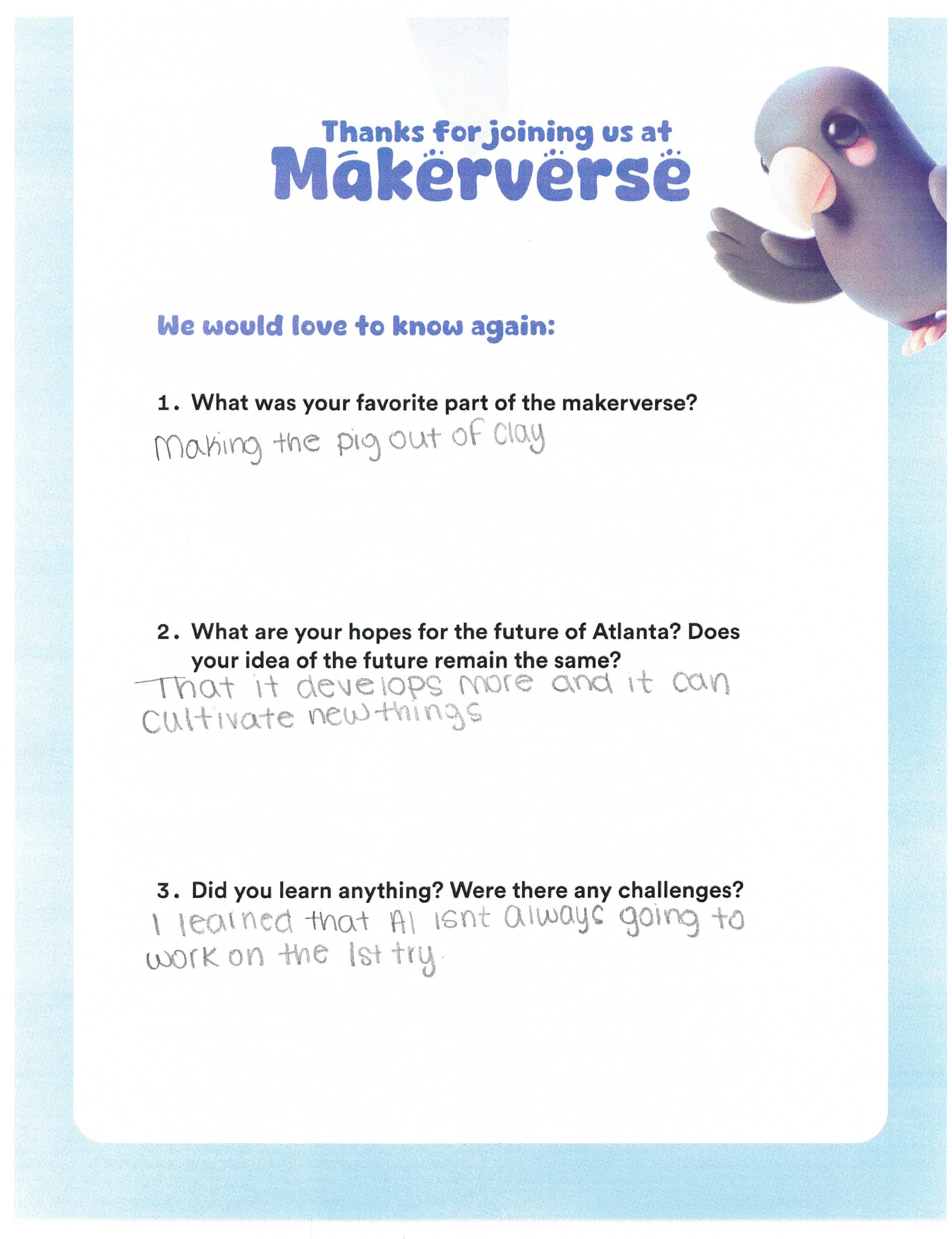 Activity: Participants used low-fidelity materials (clay, wood, resin) to build a character or object for the "Future City of Atlanta"