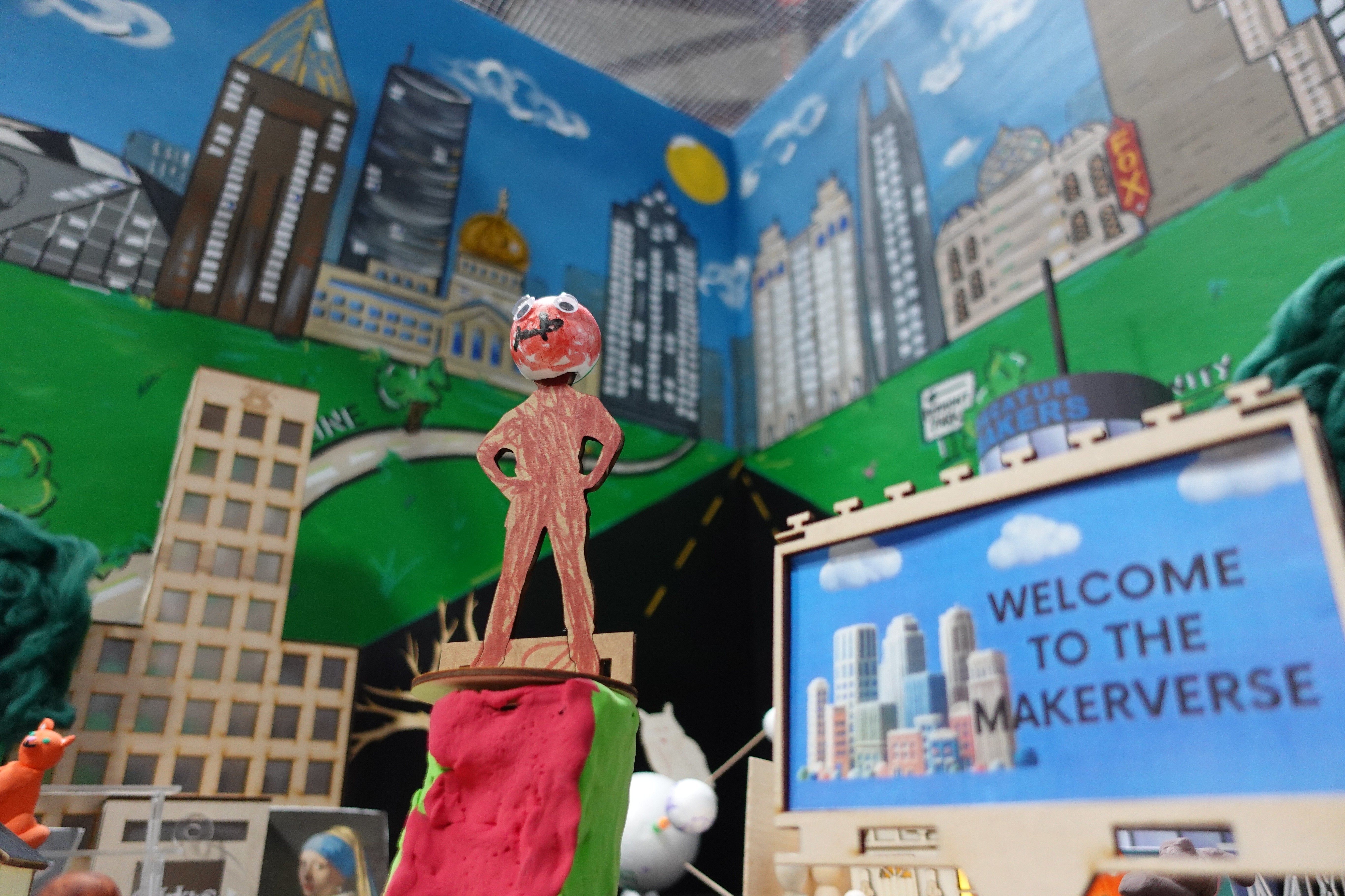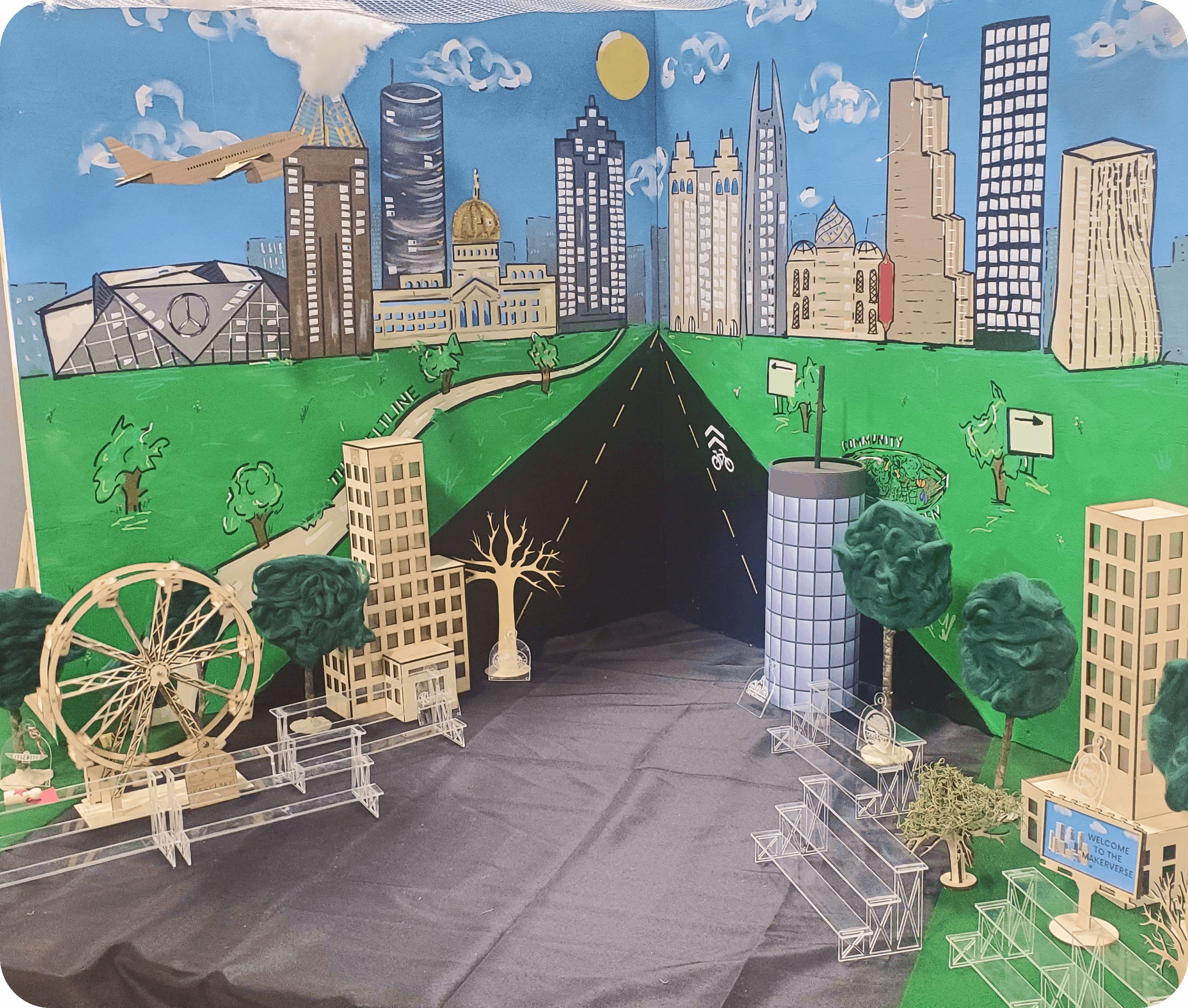 The intitial physical diorama built by makerspace which became a collective as people finished their hand made model.