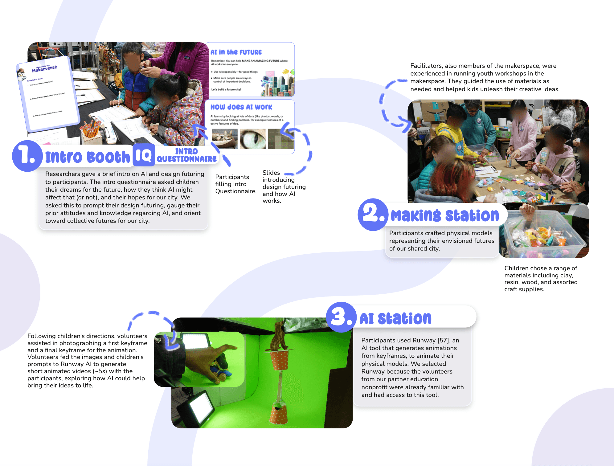 Activity: Facilitators helped participants photograph their physical models. We then used RunwayML to "animate" these static objects based on the user's verbal prompts.