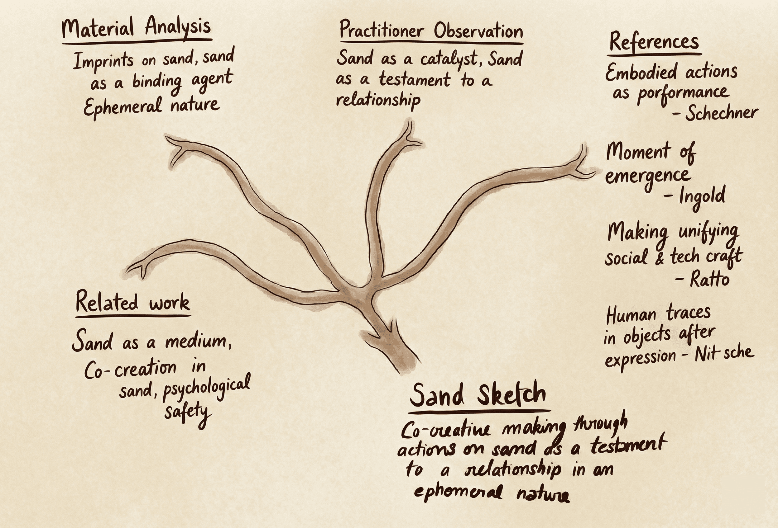 Moisture as a Variable: I observed how critical moisture content is to interaction. Dry sand flows and forgets; wet sand binds and remembers. The "binding agent" property of sand became a metaphor for how collaborators bind their ideas together.